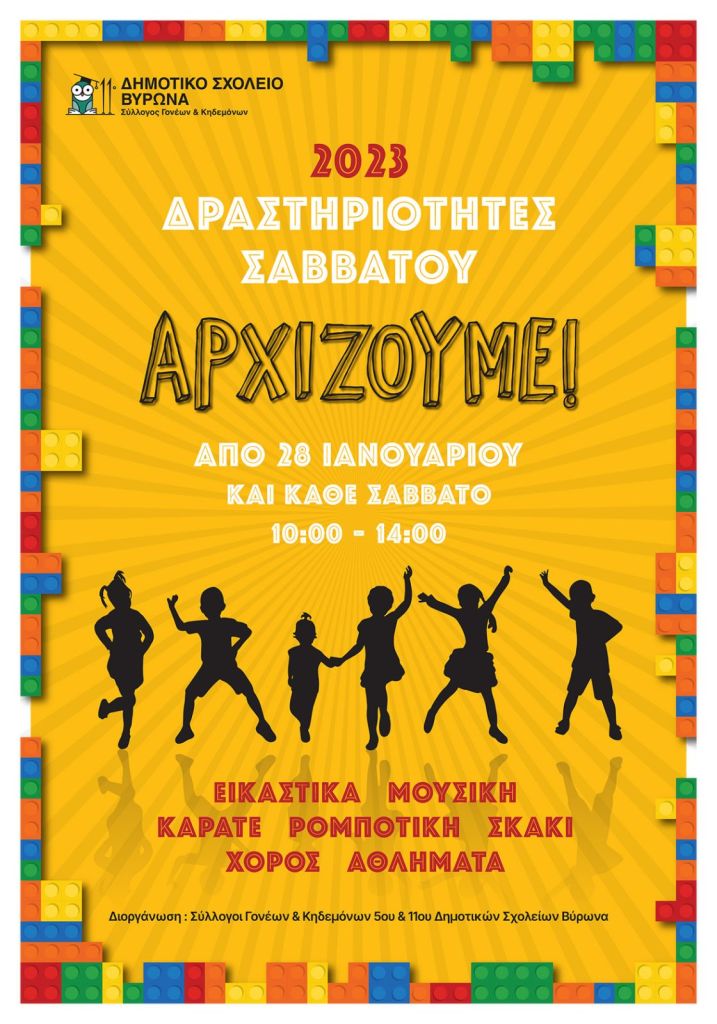 Αρχικά σας ευχαριστούμε για τη διάθεση συμμετοχής που έχετε δείξει στις δραστηριότητες 2023 που μαζί με το Σύλλογο γονέων 5ου Δημοτικού σχολείου Βύρωνα επαναφέρουμε στο σχολείο μας από το Σάββατο 28/1/2023 !!! ![]()