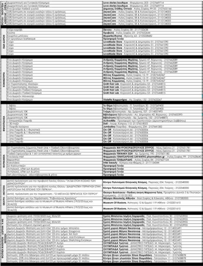 Αναμένοντας το αποκριάτικο πάρτυ της Κυριακής, σας στέλνουμε τη ΛΙΣΤΑ ΔΩΡΟΘΕΤΩΝ ΤΗΣ ΛΑΧΕΙΟΦΟΡΟΥ μας που θα διεξαχθεί την Κυριακή 19/2/23 στο τέλος του πάρτυ των παιδιών μας. Τα δώρα μας ξεπερνούν φέτος τα 160!!!(Διαμονη στην Αρκαδία, Ηλεκτρικό Πατίνι, Συναγερμός, Δωρεάν Γεύματα σε Χορους Εστίασης, Παιχνίδια, Βιβλία, Gadgets, Ηλ.Είδη, Ειδη Φαρμακείου, Προσκλήσεις σε Θεατρα & Μουσεία, Ρούχα, Παπούτσια, Αξεσουάρ, Οπτικά, Είσοδοι σε παιδότοπους, Γλυκά, Συνδρομές σε σχολές, Δωροεπιταγές Βενζίνης κ.α. πολλά δώρα)!