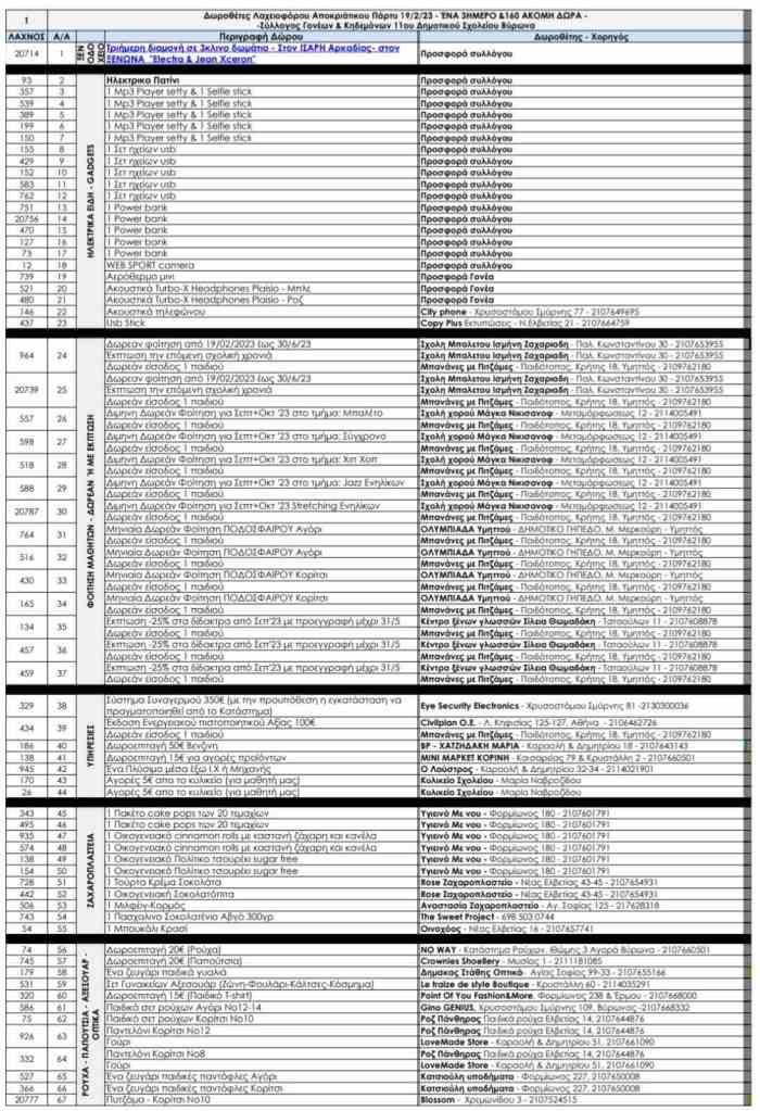 | 73 | 17 | 1 Power bank | Προσφορά συλλόγου |