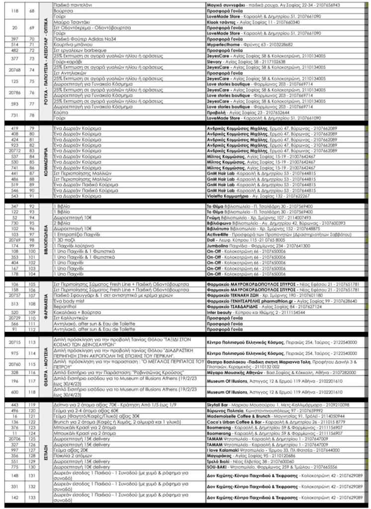 | 16 | 121 | Γεύμα (Φαγητό/Καφές/Γλυκό) αξίας 30€ | Mademoiselle Coffee & Brunch – Μαγνησίας 91, Τρόλεϊ – 2114050944 |