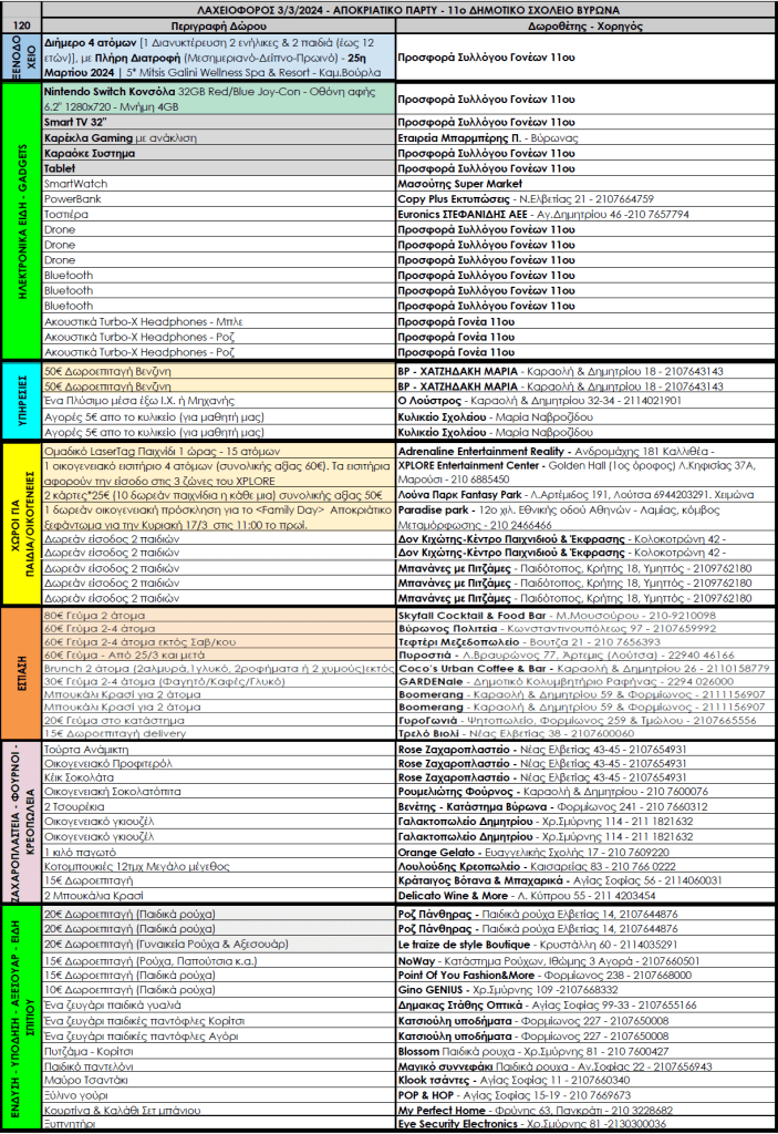 Προσθέσαμε μερικά δώρα ακόμη (Nintendo Switch, Ξενοδοχείο με Διαμονή – Πλήρη Διατροφή 4 ατόμων, Οικογενειακές Εισόδους σε Πολυχώρους κ.α.), που μπορείτε να τα δείτε παρακάτω…