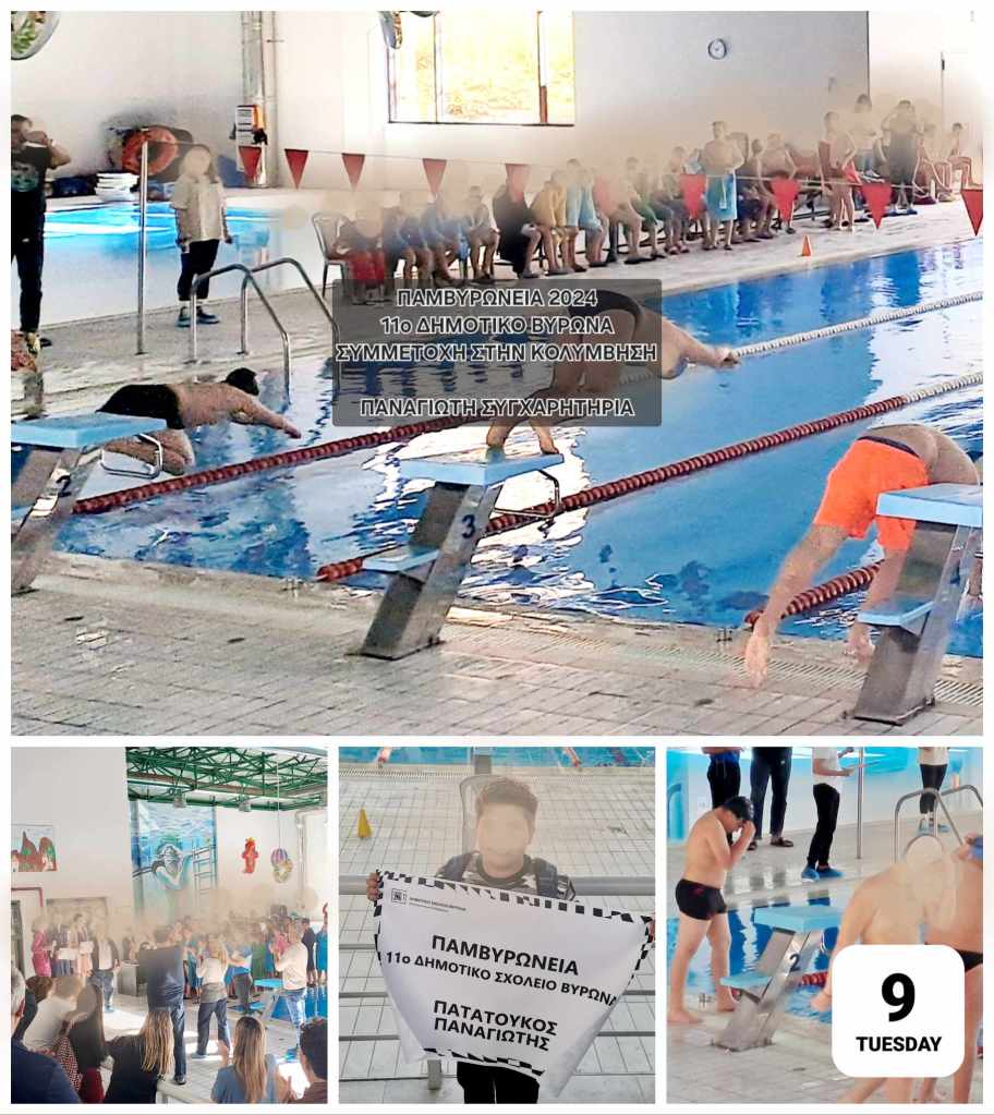 1η ημέρα αγώνων! Έναρξη με το άθλημα της Κολύμβησης και συμμετοχή του σχολείου μας με το Μαθητή της ΣΤ’ τάξης: Παναγιώτη Πατατούκο ! Αγωνίστηκε στο ελεύθερο Αγοριών Δημοτικού, δίνοντας τον καλύτερο του εαυτό !!!