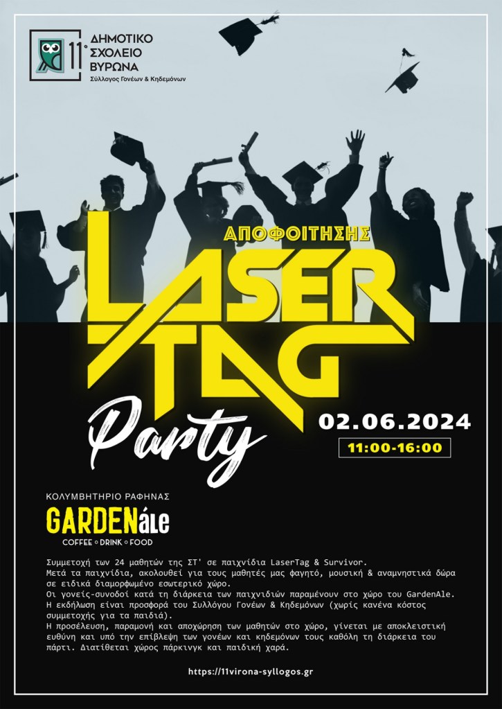 Πάρτυ αποφοίτησης ΣΤ’ με LaserTag & Survivor games! Κυριακή 2 Ιουνίου!