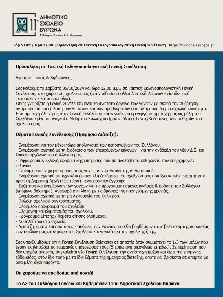 02/10/2024 HappySpot Τακτική Εκλογοαπολογιστική Γενική Συνέλευση 📢 Σάβ 5 Οκτ | Ωρα 12.00 🕛⚠ Πρόσκληση σε Τακτική Εκλογοαπολογιστική Γενική Συνέλευση ΚοινοποίησηTweet Στείλε ένα σύνδεσμο σε έναν φίλο(Ανοίγει σε νέο παράθυρο) Email Μου αρέσει! Φόρτωση...