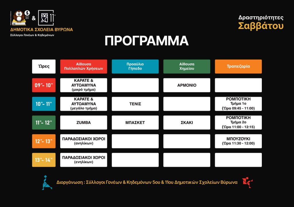 Τελικό Πρόγραμμα Δραστηριοτήτων Σαββάτου !